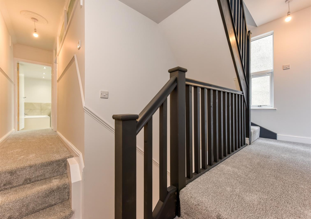 This is a period end of terraced property arranged over three floors and benefitting from an extensive and stylish refurbishment. There is a gated driveway providing off road parking to the front and a large rear garden. The internal accommodation briefly comprises living room, dining room and modern kitchen. To the first floor there are two double bedrooms and a family bathroom. To the second floor there are two further double bedrooms and a bathroom. There is a cellar and an external WC. The property benefits from central heating, double glazing and no upward chain.