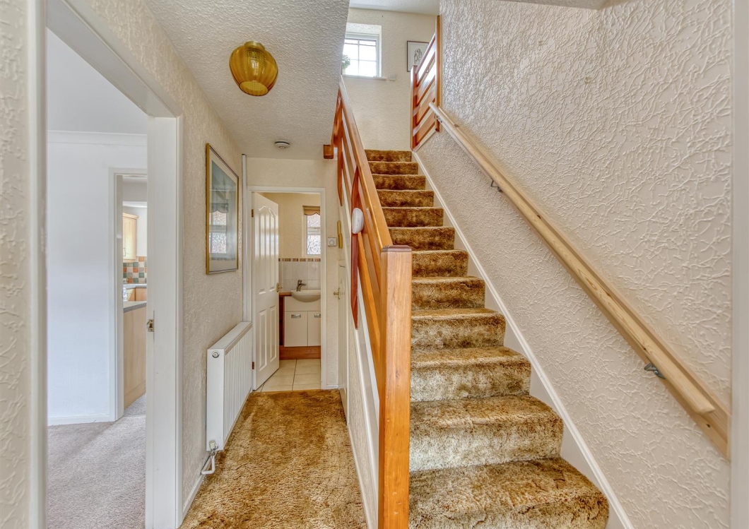 This is a detached family home occupying a corner position within this popular cul de sac with a gravelled foregarden, detached garage, off road parking with an enclosed rear garden. The internal accommodation briefly comprises entrance porch, entrance hall, cloakroom, living room, dining room, fitted kitchen and lobby to the ground floor. To the first floor there are three generous bedrooms and a family bathroom. The property benefits from central heating, double glazing and no upward chain.