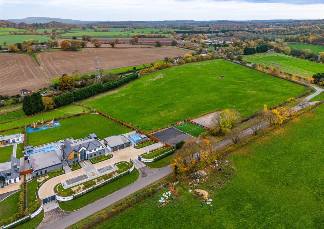 An outstanding residence for the ultimate luxury home within around 16 acres. Nothing more could be desired; high quality fittings and security, Smart Home technology, leisure/fitness complex with swimming lane, outdoor kitchen and heated pool, Astro turf football pitch and climate controlled garaging – simply unrivalled in the local market.