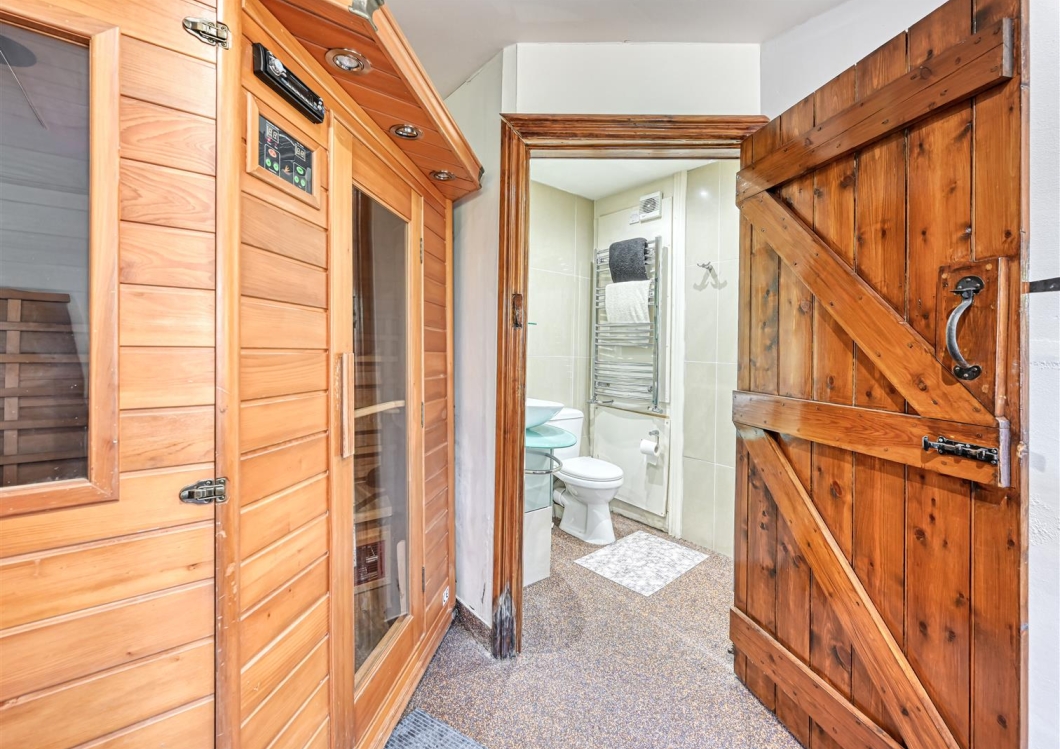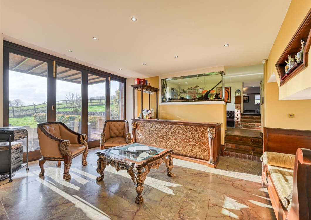 This is a particularly interesting Barn conversion which has been lovingly converted by the current owners during their tenure with lovely gardens adjoining the golf course, extensive gated parking and a garage. The Barn has leisure facilities including an indoor pool and gym with sauna. The family accommodation comprises open plan family room with vaulted ceiling, farmhouse kitchen and adjoining entertainment space with games room. There are five bedrooms. The principal bedroom benefits from a dressing room, en-suite bathroom and balcony overlooking the fields. There is a main house bathroom, a mezzanine loft area to bedroom three and a home office. The property benefits from double glazing, LPG heating and no upward chain.