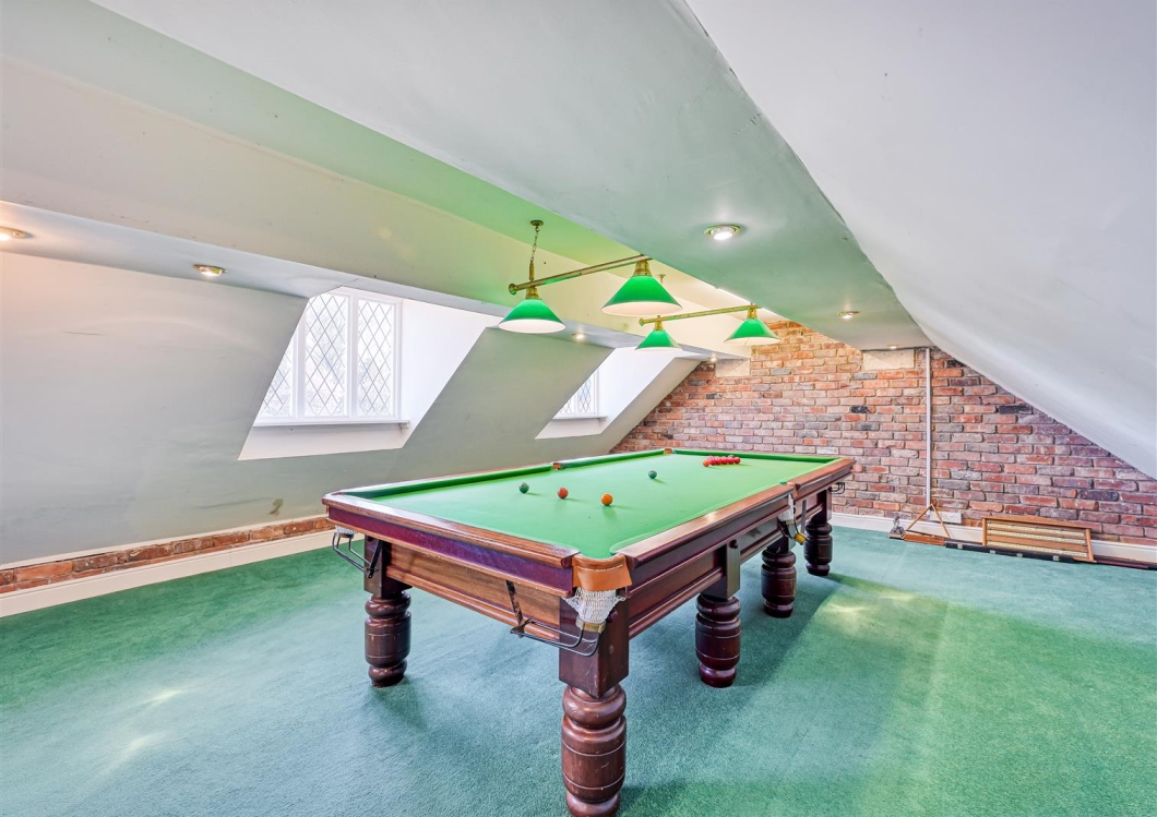 Externally The Wollery House has wrought iron, remote controlled, gated access off Wollery Lane and beautifully landscaped grounds, terraces, well stocked beds and borders and a DETACHED GARAGE BLOCK with a three bay garage with light and power and stairs rising to a SNOOKER / LEISURE ROOM ABOVE which could be used for a variety of different purposes.