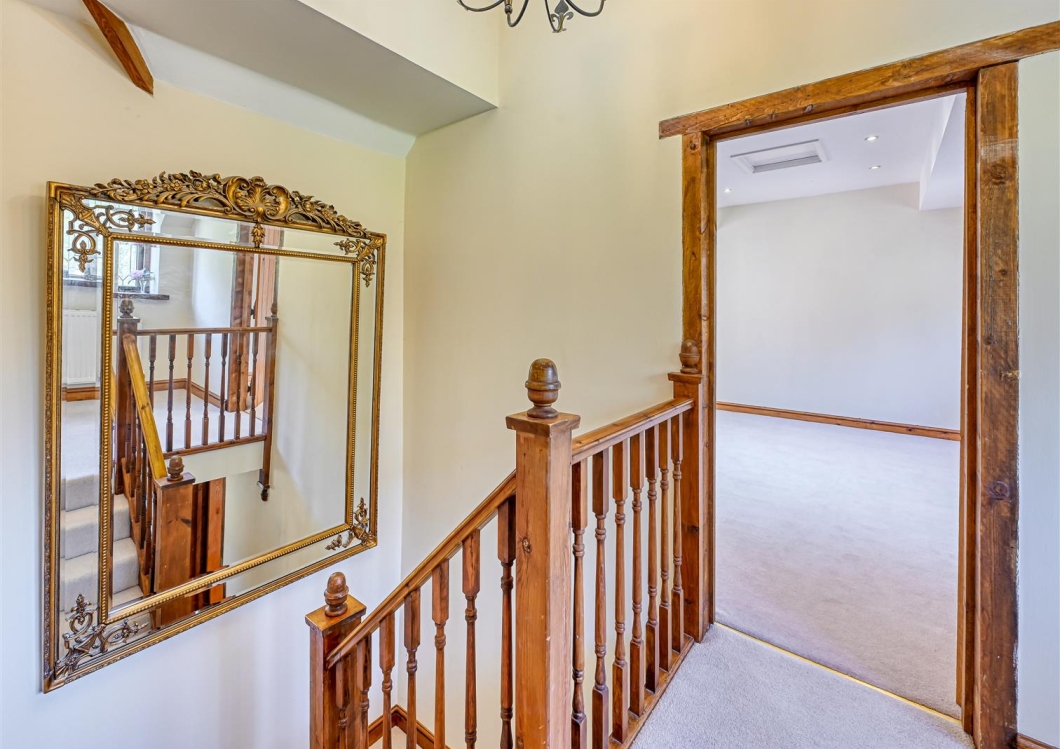 A staircase rises to the first floor landing with exposed timbering. There are THREE DOUBLE BEDROOMS and a well appointed HOUSE BATHROOM with the upper floor having a LANDING / DRESSING ROOM with a wide bank of fitted wardrobes, a DOUBLE BEDROOM, a SECOND DRESSING ROOM with cupboards and chests of drawers and a well appointed BATHROOM.
