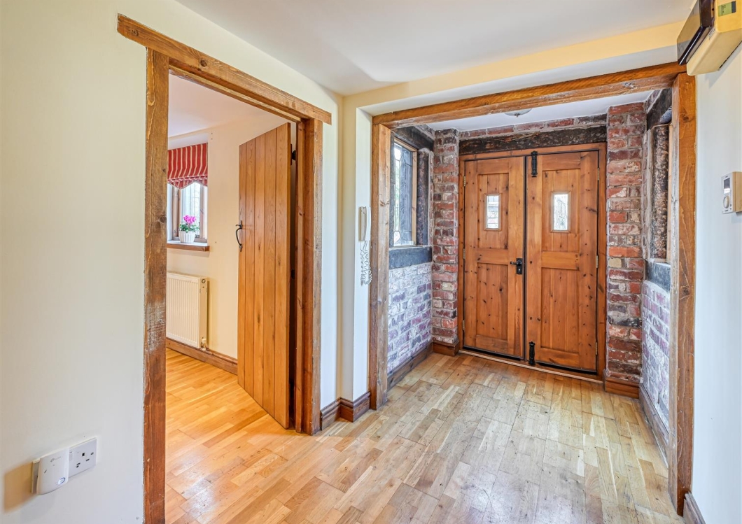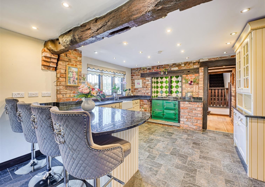 This is an exceptionally attractive, three storey period family home with elevations of architectural interest with stone casements, leaded windows and superb brickwork. In brief the property provides fine living areas and is approached through a tile hung, gabled PORCH which opens into the oak floored HALLWAY with exposed brick and timberwork and a GUEST CLOAKROOM. The LOUNGE has a wide, exposed brick inglenook fireplace with a cast iron solid fuel burning stove and double doors opening into a double glazed CONSERVATORY which has a lovely aspect over the gardens. There is a FAMILY ROOM with an exposed brick chimney piece, LPG fire, ceiling beam and a door into a STUDY which could be an ideal place for those wishing to work from home. There is a large BREAKFAST KITCHEN with cream faced units, granite surfaces and a double oven Aga, integrated fridge and dishwasher, a walk in larder and a store with double doors opening into a FAMILY ROOM with a light through aspect and wiring for a wall mounted TV. A door from the breakfast kitchen opens into a SECOND / SPICE KITCHEN with cream faced units, a four ring gas hob and electric oven, plumbing for a washing machine and space for a tumble dryer.