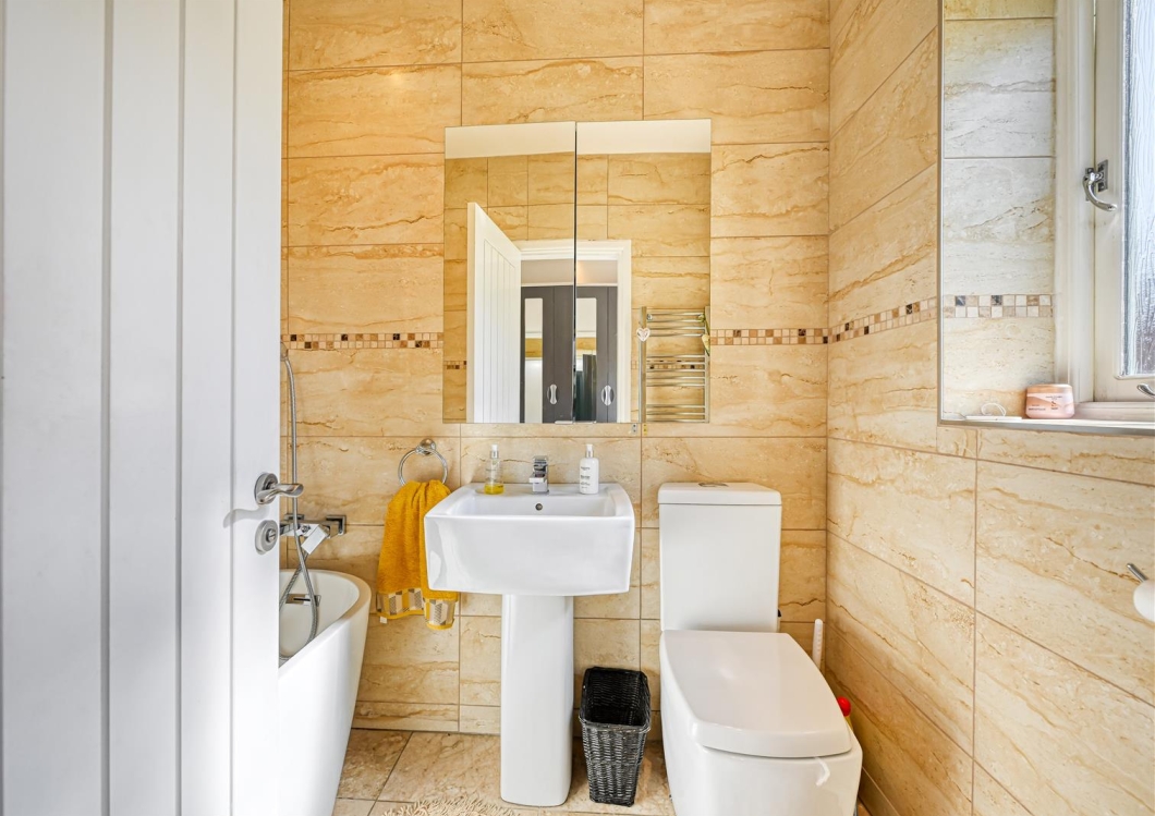 The first floor has a large PRINCIPAL BEDROOM with a light through aspect, a SECOND DOUBLE BEDROOM and a well appointed BATHROOM with a white suite including a panelled bath and separate tiled shower.
